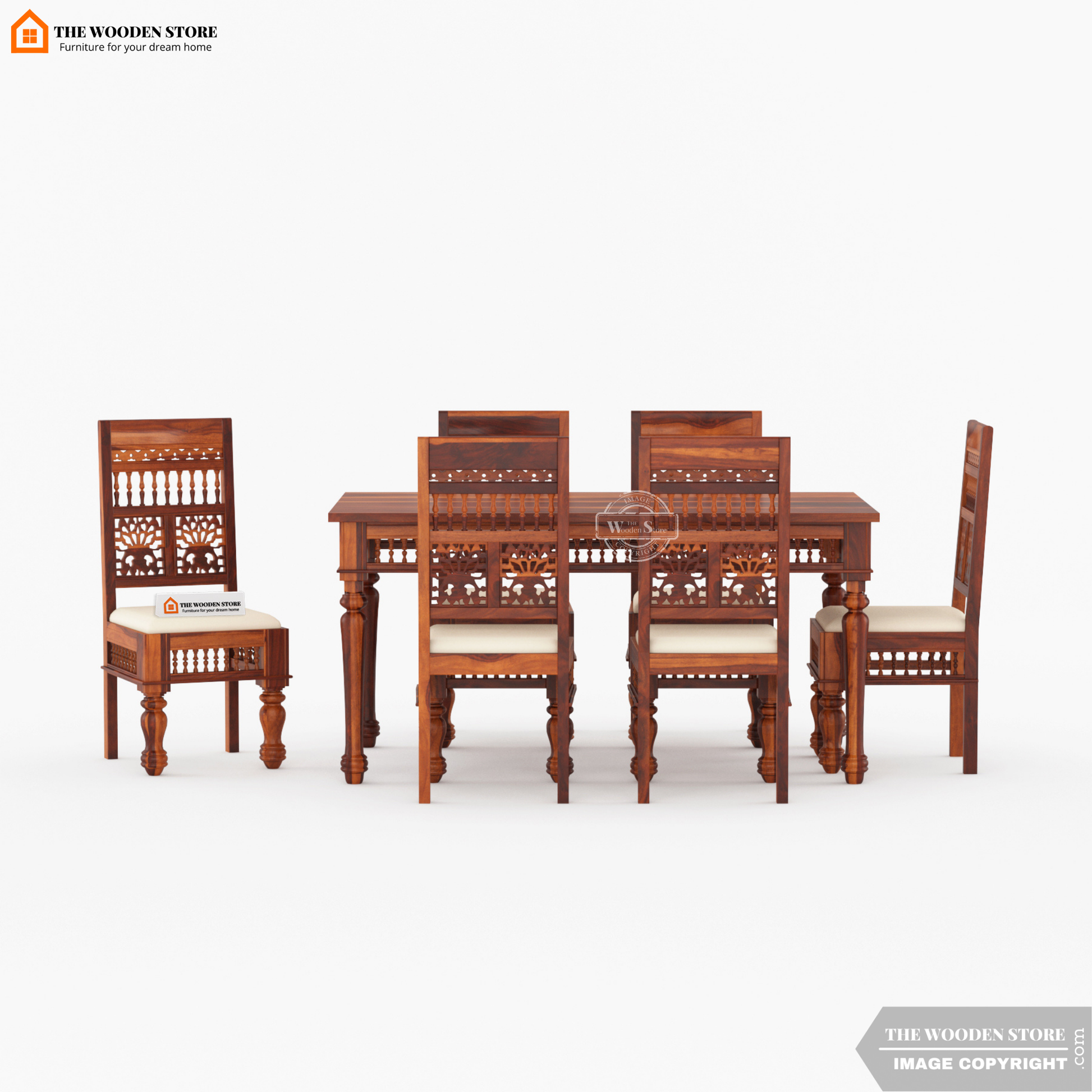 Ekatra 6 Seater Dining Set in Honey Finish is a thoughtfully crafted solid wood dining set made from premium Sheesham wood, designed to bring natural warmth and composed elegance to everyday dining. The honey finish softens the wood’s character, highlighting the grain while creating a welcoming, well-lit ambience around the table. This 6 seater dining set features a spacious table sized 59 L x 36 W x 30 H (Inch), paired with comfortably proportioned chairs measuring 16 L x 17.5 W x 38 H (Inch) that support relaxed, upright seating. Its balanced proportions make it ideal for family meals as well as hosting guests, without overwhelming the room. Crafted for strength and long-term use, this dining set is delivered with expert assembly and backed by a 36-month warranty, offering a refined yet practical dining solution for modern Indian homes.